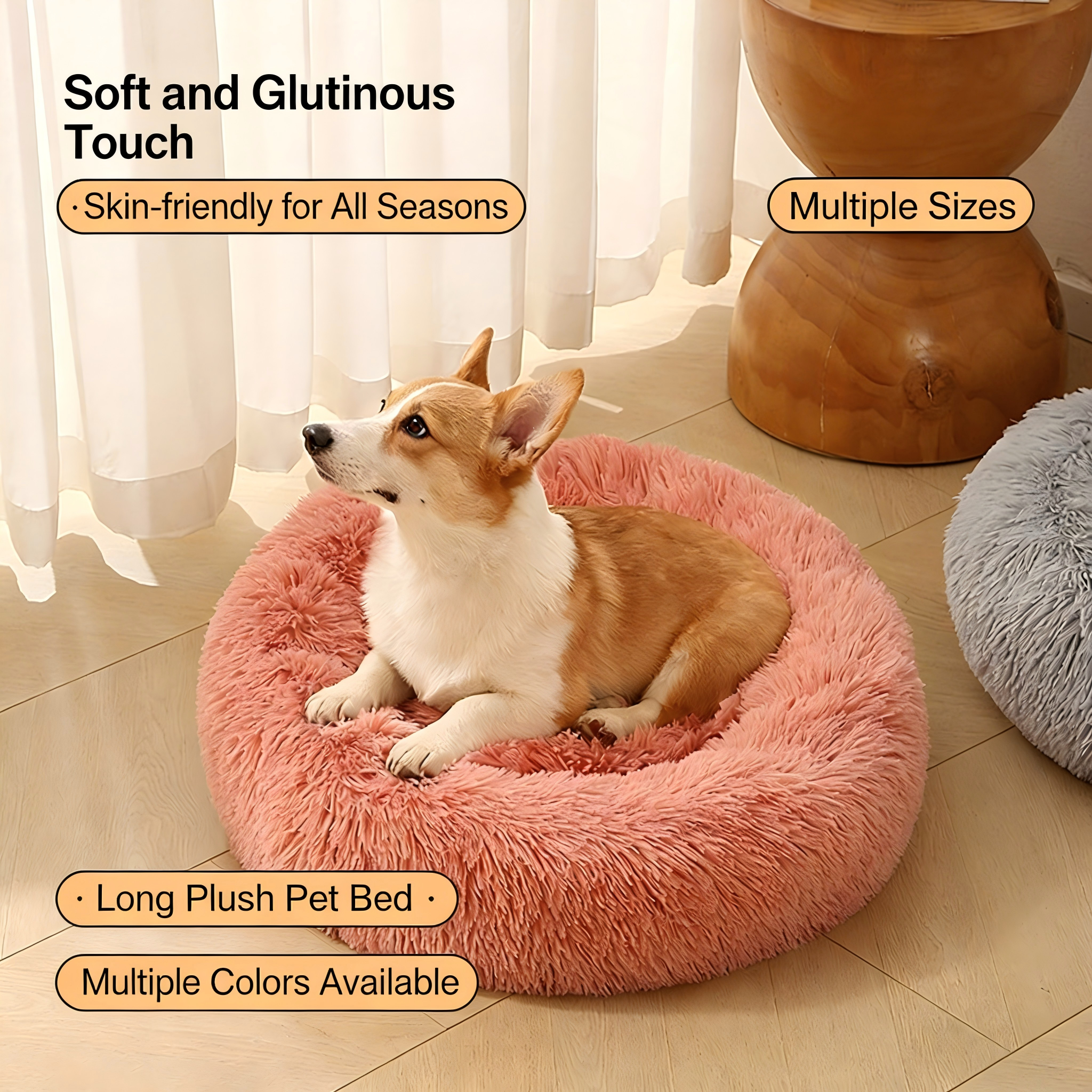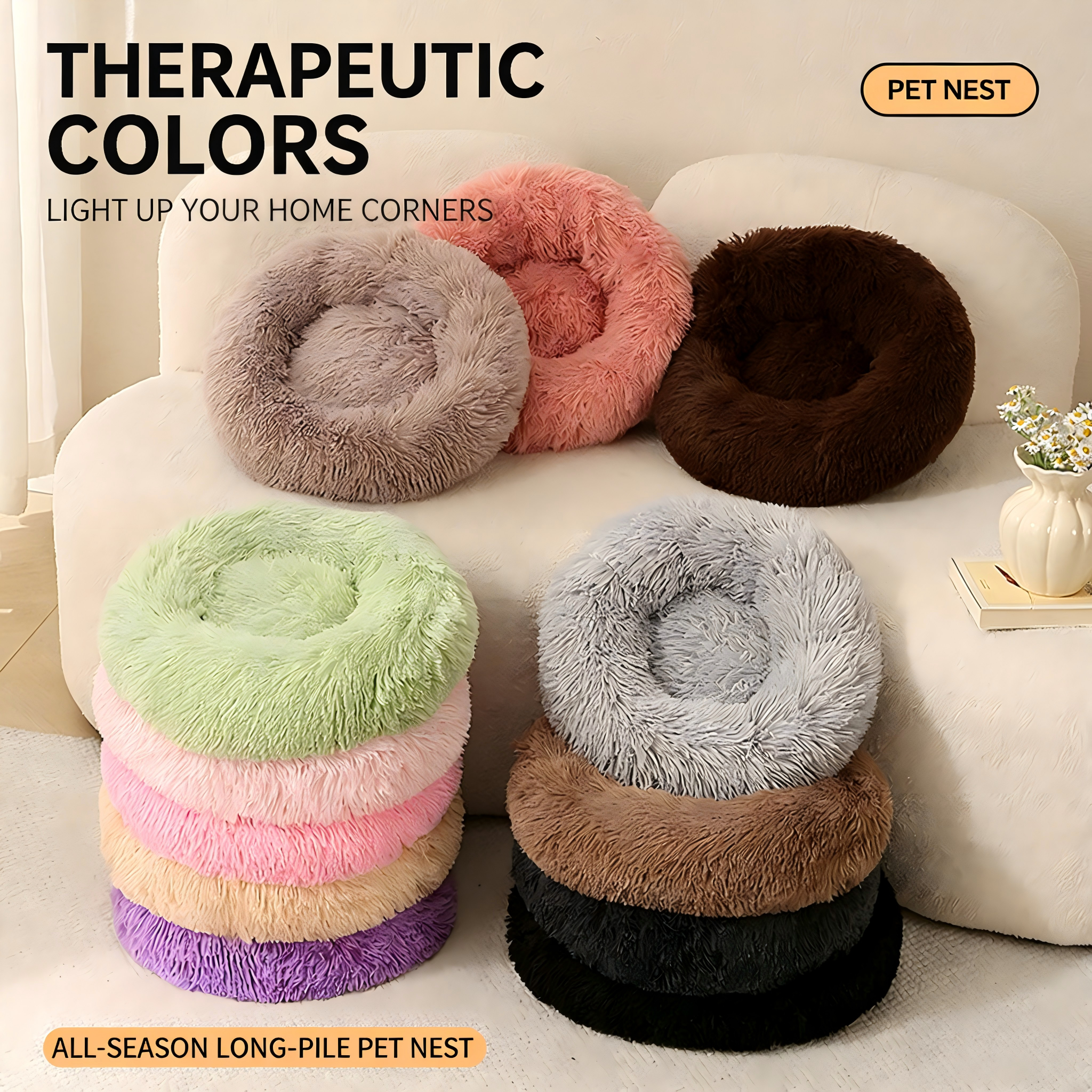 Our Deep Sleep Series features premium 4cm long plush fabric and high-elasticity PP cotton filling. Available in a full size range from 40cm to 100cm, this self-warming donut bed is specifically designed for global distributors to provide exceptional security and joint support for pets of all sizes.